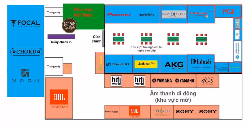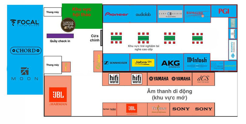Để mang đến nên một sân chơi thật sự cho người đam mê tai nghe và âm thanh di động cũng như tạo cơ hội gặp gỡ cho những người có cùng sở thích với không gian trải nghiệm thoải mái, sáng tạo và mới mẻ, ban tổ chức đã thiết kế 3 khu vực riêng biệt gồm: khu vực trải nghiệm tai nghe là không gian kín tách biệt, cách li tiếng ồn, khu vực trưng bày - trình diễn loa di động động cao cấp và khu hội thảo chuyên đề.