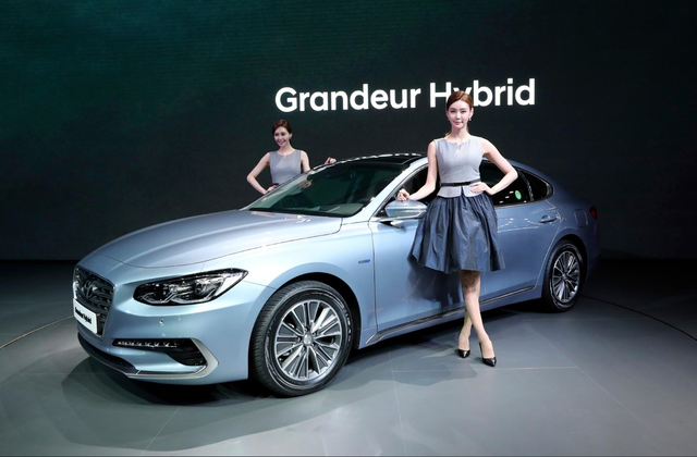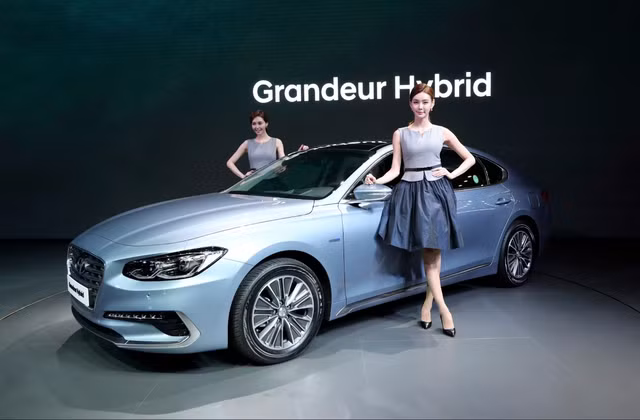 Với mức tiêu thụ nhiên liệu trung bình 6,17 lít/100 km, phiên bản Hybrid hoàn toàn mới này của mẫu sedan hạng sang Grandeur được kỳ vọng sẽ giúp tăng thị phần cho Hyundai ở phân khúc xe "xanh". (Ảnh: AP)