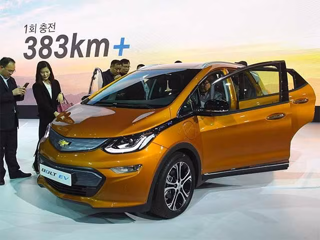 GM Bolt EVđược giới thiệu là có thể chạy 383 km sau mỗi lần sạc, tức là nếu dùng để đi làm hàng ngày thì có thể sạc một lần và chạy cả tuần. (Ảnh: Yonhap)