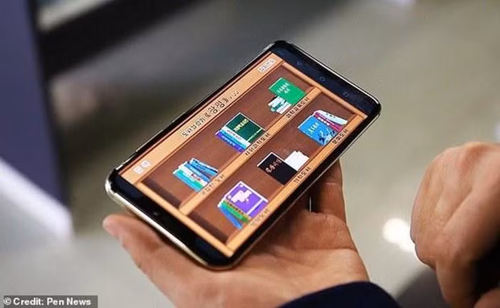 Ứng dụng thư viện với các đầu sách điện tử mặc định trên điện thoại Pyongyang 2425. (Nguồn: Pen News)