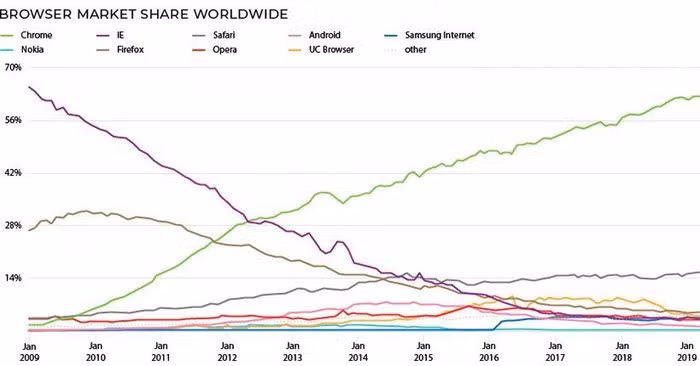 Một thập kỷ suy tàn của trình duyệt Firefox. Ảnh: Medium.