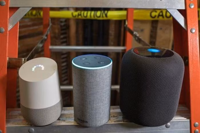 Bộ ba sản phẩm loa thông minh tích hợp các trợ lý ảo - từ trái qua: Google Home (Google), Amazon Echo (Alexa)và Apple HomePod (Siri). (Nguồn: Getty Images)