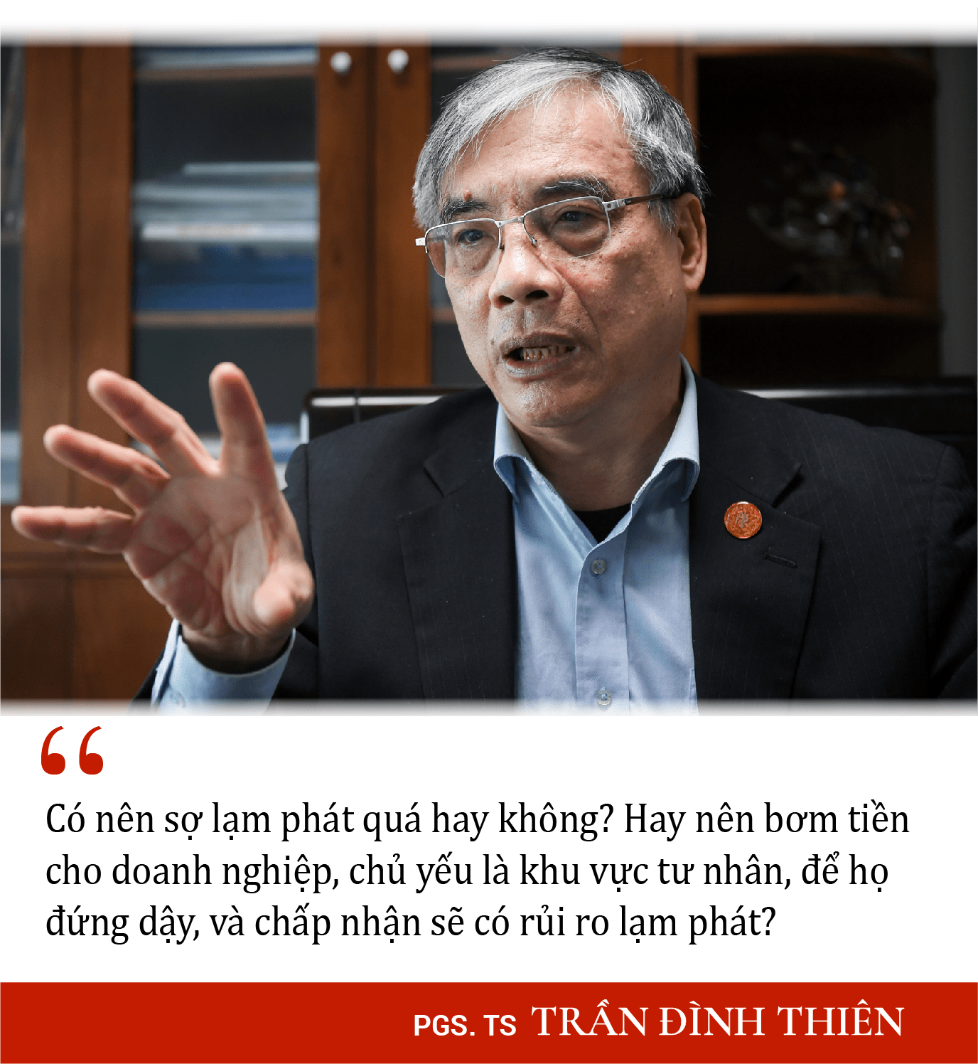 Hiện nay, kiểm soát lạm phát đang tốt, không có lý do gì để sợ. Nếu đã là lạm phát nhập khẩu thì chẳng có cách gì chống cự. Đừng vì thế mà làm hại mình. Còn những yếu tố gây ra lạm phát chi phí đẩy, kể cả từ nước ngoài vào, nếu can thiệp được phải tích cực can thiệp, để đặt mục tiêu cứu doanh nghiệp lên hàng đầu. Ví dụ như giảm giá xăng dầu còn phải mạnh hơn, giúp giảm lạm phát, giảm chi phí cho doanh nghiệp, họ hoạt động được họ sẽ đóng thuế.