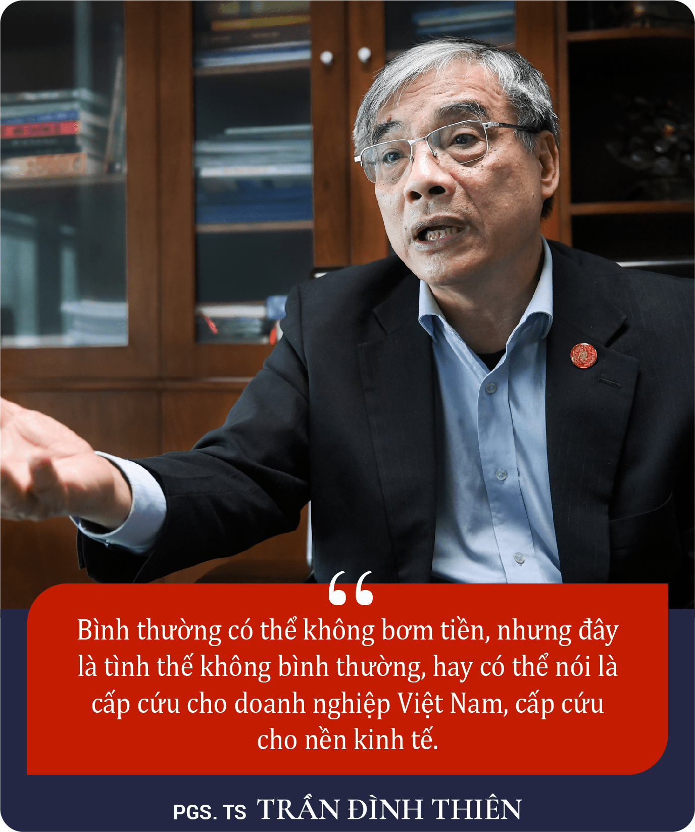 Cho rằng mục tiêu quan trọng nhất ở thời điểm hiện tại là “cấp cứu” cho doanh nghiệp, cho nền kinh tế, PGS. TS Trần Đình Thiên, nguyên Viện trưởng Viện kinh tế Việt Nam nhấn mạnh: “Không được quên rằng doanh nghiệp còn rất yếu, và trong lúc kinh tế thế giới còn khó khăn, Việt Nam phải tranh thủ thời cơ bứt phá.