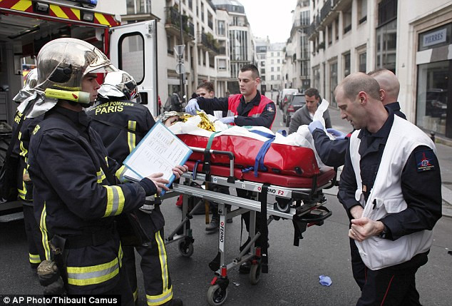 Hiện trường vụ tấn công toà soạn báo Charlie Hebdo tại Pháp.