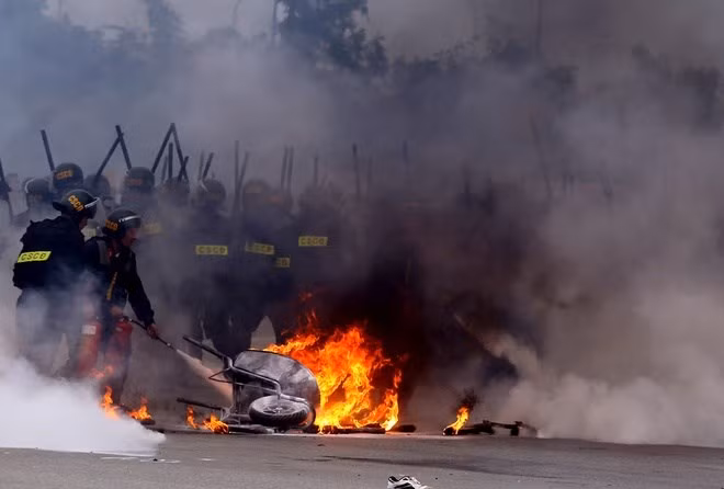 Lực lượng phòng hóa của Bộ Tư lệnh Thủ đô cũng tham gia trong buổi lễ xuất quân. Bộ phận này chuyên xử lý những tình huống khi có bom hóa học, cháy nổ xảy ra.