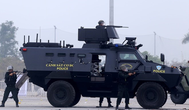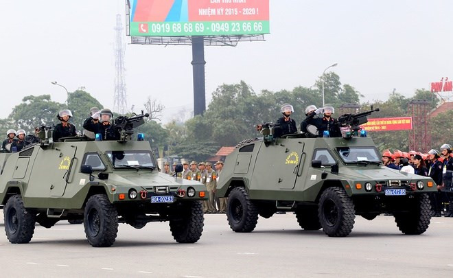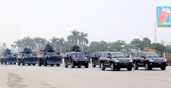 Sáng 9/1, tại sân vận động quốc gia Mỹ Đình (Hà Nội), hơn 5.000 cán bộ, chiến sĩ cùng nhiều khí tài hiện đại đã tham gia lễ xuất quân và diễn tập phương án bảo vệ Đại hội Đảng toàn quốc lần thứ 12. Mở đầu là màn duyệt đội ngũ với hơn 5.000 cán bộ, chiến sĩ từ các khối: công an nhân dân, cảnh sát cơ động, đặc nhiệm...