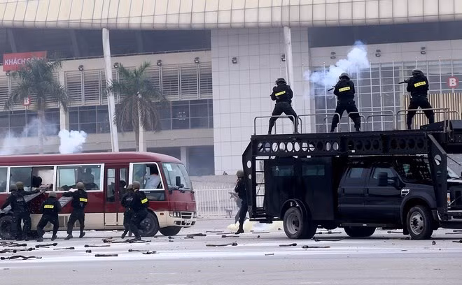 Ngoài phần xuất quân, phương tiện, khí tài chống khủng bố bạo động, nhiều nội dung chống khủng bố giải cứu con tin cũng diễn ra. Phát biểu trong buổi lễ xuất quân, Bộ trưởng Công an Trần Đại Quang nhấn mạnh, Đại hội đại biểu toàn quốc lần thứ 12 của Đảng là sự kiện chính trị quan trọng, thu hút sự quan tâm theo dõi của người dân trong và ngoài nước. Công tác bảo vệ tuyệt đối an ninh an toàn Đại hội Đảng có ý nghĩa quan trọng và góp phần thành công của Đại hội.
