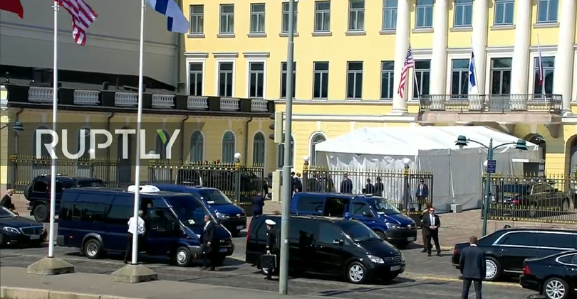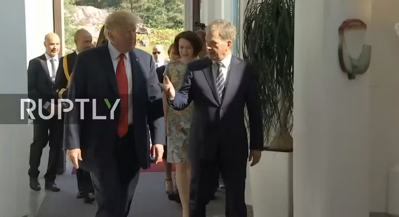 | Tổng thống Trump tới dinh thự của tổng thống Phần Lan. |