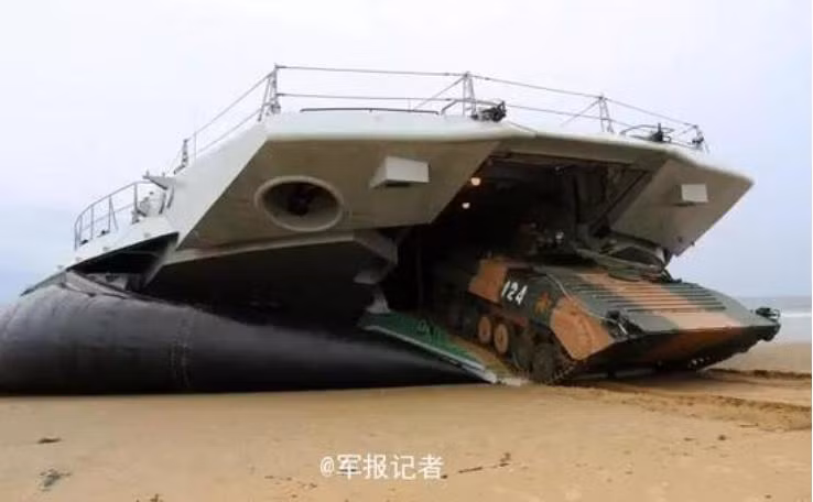 Bài báo nhắc tới điều này, bởi vì, trước đó báo chí Trung Quốc đăng tải nhiều hình ảnh cho thấy tàu bán ngầm Đông Hải Đảo đã chở theo tàu đổ bộ đệm khí Zubr.