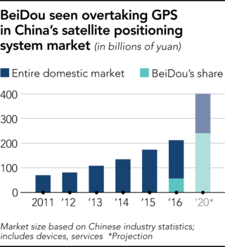 Theo Nikkei Asian Review, hệ thống định vị Beidou (Bắc Đẩu) của Trung Quốc sẽ mở rộng phạm vi ra toàn cầu vào năm 2020 với sự ra mắt của vệ tinh thứ 35. Hơn 150 triệu smartphone nội địa Trung Quốc đã có thể nhận được tín hiệu từ 23 vệ tinh. Vào năm đó, thị trường kinh doanh và dịch vụ phụ thuộc vào hệ thống này dự kiến sẽ đạt doanh thu lên đến 240 tỷ nhân dân tệ (36,9 tỷ USD) - gấp bốn lần so với năm 2016.