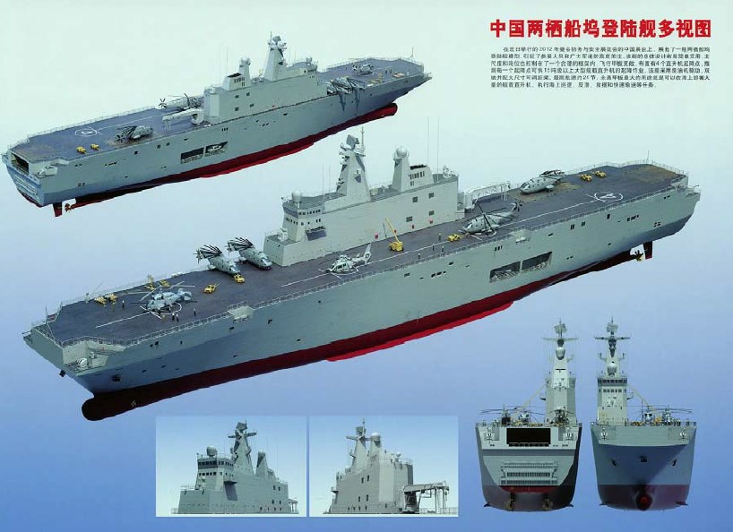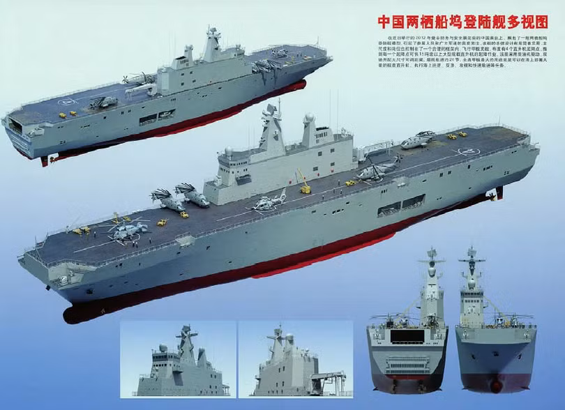 Theo những thông tin được công bố trên trang navyrecognition.com, tàu đổ bộ trực thăng Trung Quốc sẽ có chiều dài khoảng 250 m, chiều rộng 30 m. Tàu đổ bộ trực thăng có lượng giãn nước khoảng 40 nghìn tấn, sẽ trở thành một trong những tàu đổ bộ trực thăng lớn nhất trên thế giới hiện nay. Tàu đổ bộ trực thăng của Mỹ lớp "Wasp" có lượng giãn nước là 40.500 tấn, tàu "Mistral" của Pháp có lượng giãn nước - 21.300 tấn.