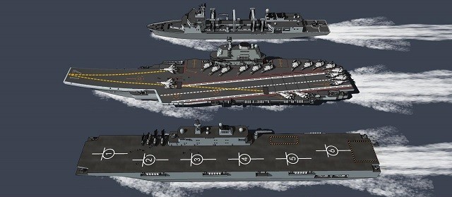 Trong khuôn khổ chương chình này, Bắc Kinh tiến hành đóng thêm nhiều tàu khu trục và tàu hộ vệ tên lửa, tàu sân bay dự dán Type 001 đồng thời nghiên cứu thiết kế tàu sân bay sử dụng năng lượng nguyên tử nhằm đảm bảo khả năng hoạt động liên tục, thường xuyên trên đại dương. Kế hoạch đóng tàu đổ bộ trực thăng cũng nằm trong khuôn khổ của chương trình này.