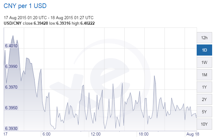 Trong thời gian vừa qua, PBOC đã yêu cầu các ngân hàng thương mại tích cực bán ra ngoại tệ để cứu tỷ giá Nhân dân tệ giảm mạnh sau động thái điều chỉnh quy chế tỷ giá tham chiếu từ ngày 11/8/2015. Kho dự trữ ngoại hối của nước này trong 7 tháng qua đã giảm 192 tỷ USD.