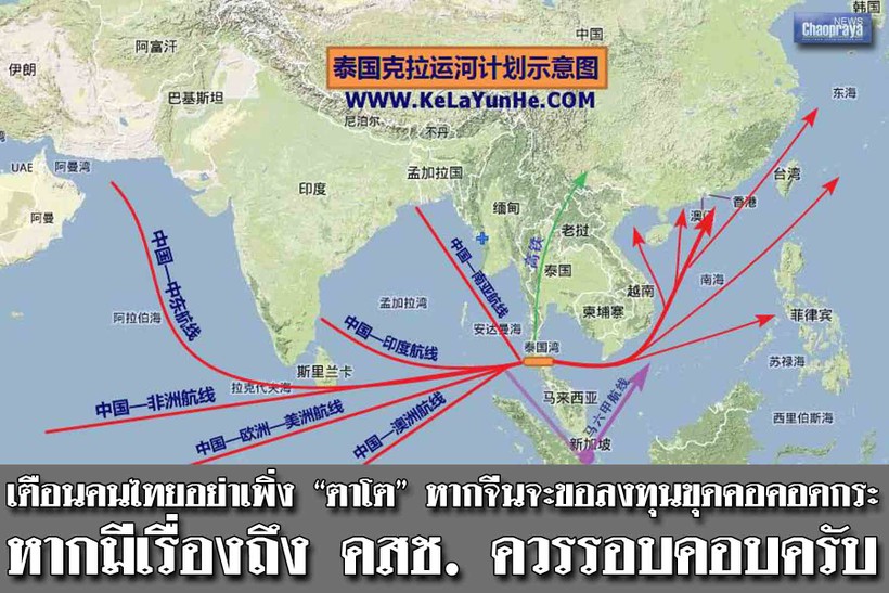 Truyền thông Trung Quốc đưa tin: Đại diện Trung Quốc và Thái Lan đã ký một thỏa thuận xây dựng kênh đào qua Kra Isthmus, phần hẹp nhất của bán đảo Malay.