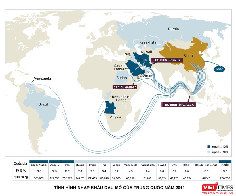 Đặc biệt, nguy cơ đe dọa an ninh thương mại hàng hải Trung Quốc có thể hiện hữu rất rõ nét trên Ấn Độ Dương, do nền kinh tế và năng lượng sản xuất của Trung Quốc phụ thuộc rất nhiều vào nguồn dầu mỏ từ khu vực Trung Đông.