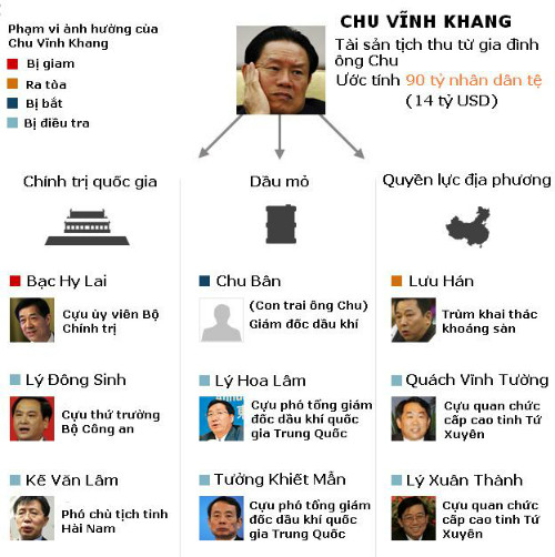 "Đằng sau một số đại tham quan bị điều tra những năm gần đây, đều có một nhóm quan chức với các quan hệ lợi ích phức tạp", Xinhua viết trong một bài bình luận hôm 3/1. "Tình trạng này hình thành nên các phe phái hoặc công khai, hoặc ẩn kín".Việc Ủy ban Chính pháp lần đầu tiên tuyên bố sẽ tận diệt sức ảnh hưởng của Chu Vĩnh Khang, diễn ra trong bối cảnh giới lãnh đạo cao nhất Trung Quốc đang nỗ lực loại trừ vấn nạn kết bè kéo cánh trong quan trường nước này. "Phải tuyệt đối trung thành với đảng, không cho phép bất kỳ ai đứng lên trên đảng", Bí thư Mạnh Kiện Trụ nhấn mạnh trên hội nghị hôm qua.