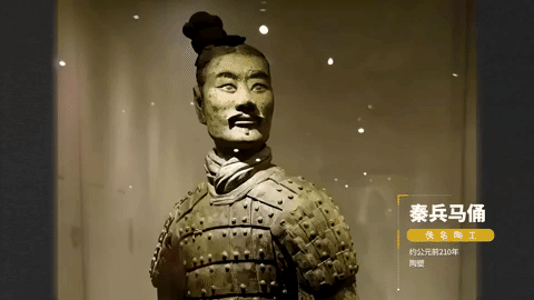 Một trong những hình ảnh được làm sống lại là của một chiến binh đất nung. Chúng ta không lạ gì các tượng chiến binh đất nung, có niên đại từ năm 221 đến 207 trước Công nguyên. Những bức tượng người lính này được chôn cùng với hoàng đế nhà Tần để bảo vệ ông ta ở thế giới bên kia.