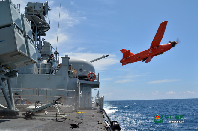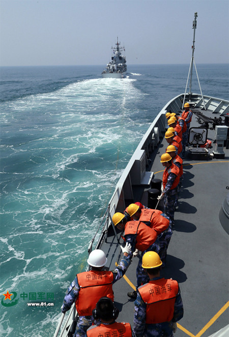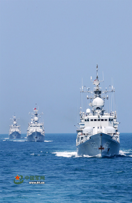 Tàu chiến Trung Quốc nối đuôi xuất kích.