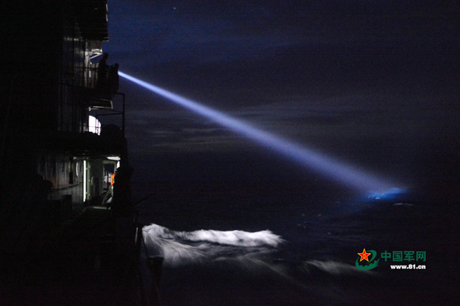 Trong ảnh là tàu Trung Quốc chiếu đèn diễn tập cứu nạn trong đêm.