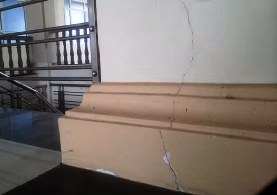 Vệt rạn nứt chạy dài từ dưới tầng hầm lên tới trần nhà