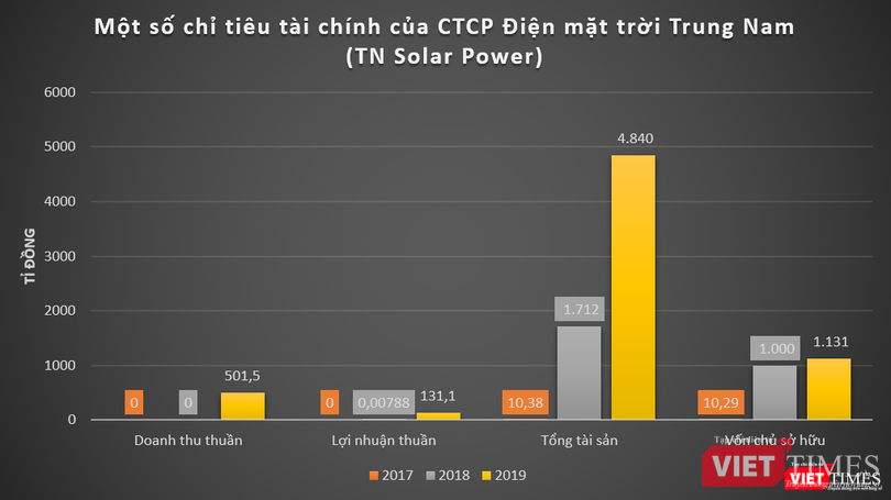 Dữ liệu của VietTimes cho thấy, TN Solar Power chỉ mới pháp sinh doanh thu vào năm 2019, tuy nhiên kết quả mang lại lại rất ấn tượng. Cụ thể, năm 2019, TN Solar Power ghi nhận doanh thu thuần đạt 501,5 tỉ đồng, báo lãi thuần ở mức 131 tỉ đồng, tương ứng với biên lợi nhuận hơn 26%, hay cứ khoảng 4 đồng doanh thu lại thu về 1 đồng lãi.