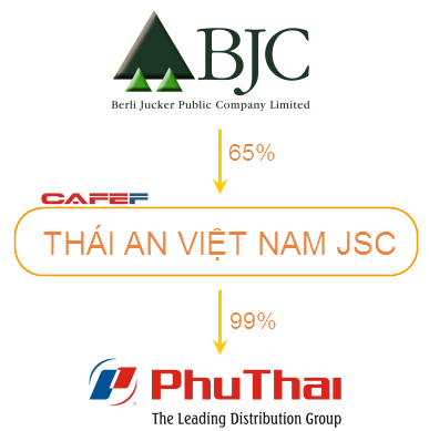 Theo các thông tin trong báo cáo thường niên 2 năm 2013 – 2014 của BJC thì Tập đoàn này đã gián tiếp sở hữu 64,55% lợi ích của Phú Thái Group thông qua việc sở hữu 65% cổ phần của CTCP Thái An Việt Nam. Như vậy đồng nghĩa với việc Thái An Việt Nam trực tiếp sở hữu hơn 99% cổ phần của Phú Thái Group.
