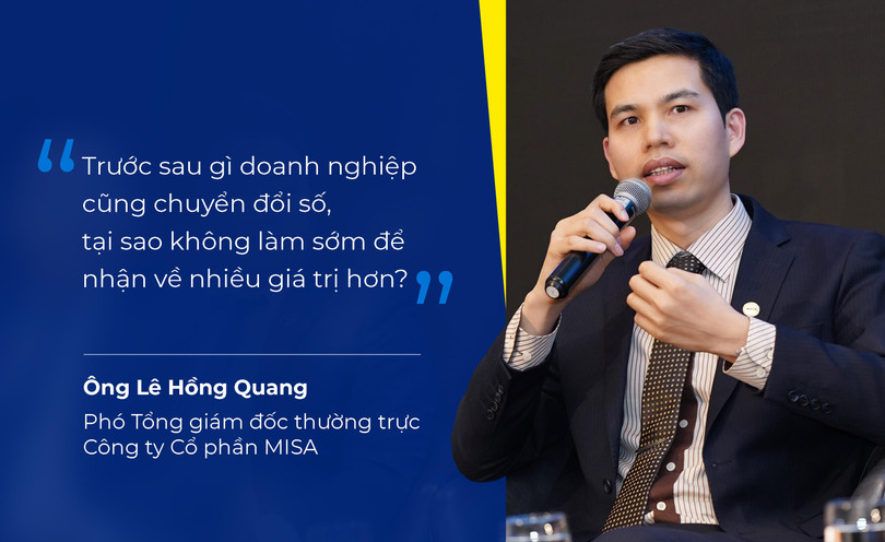 “Nếu doanh nghiệp không chuyển đổi số thì đối thủ sẽ làm. Trước sau gì cũng chuyển đổi số, tại sao chúng ta không làm sớm để tạo ra nhiều giá trị hơn”– ông Quang nêu vấn đề.