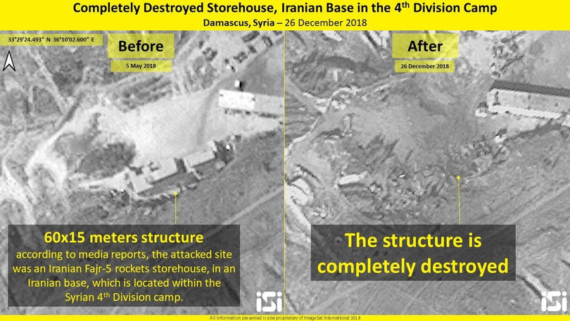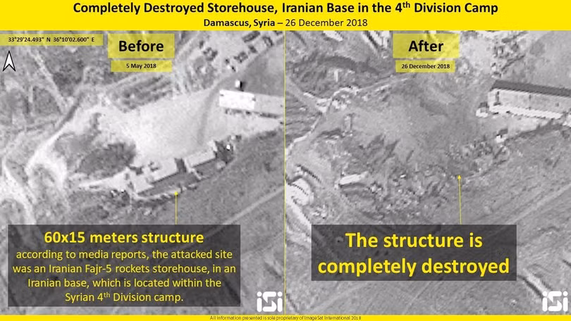 Trong cuộc tấn công, không quân Israel phóng 59 tên lửa nhằm vào các mục tiêu khác nhau của Syria. Lực lượng phòng không Syria phóng 64 tên lửa phòng không SAM đánh trả, bao gồm hệ thống Pantsir-1S, S125, S-200, có 3 quân nhân bị thương.