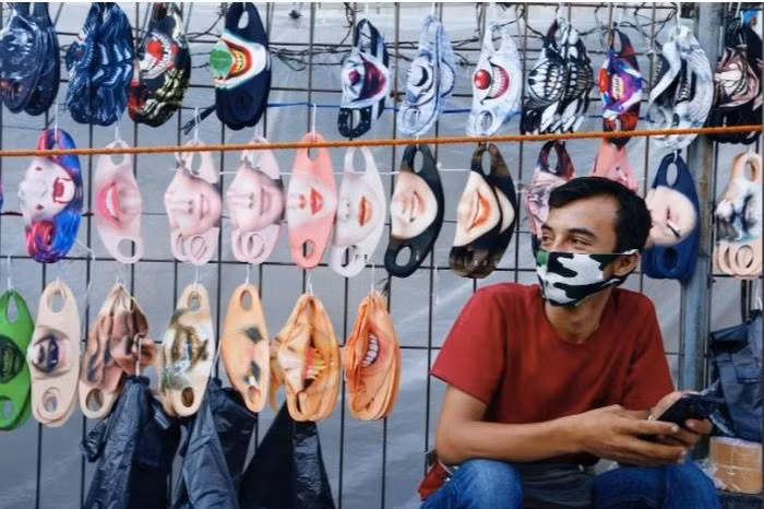 Khẩu trang mùa Covid-19 được bày bán ở Indonesia. (Ảnh: Reuters)