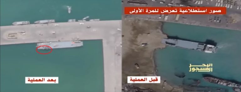 Phim tài liệu giới thiệu hình ảnh vệ tinh hậu quả các cuộc tấn công nhằm vào tàu đổ bộ của Hải quân UAE “al-Awdah” và tàu quét mìn “al-Qanisah” ngày 26 và 29.07.2017. Theo các chuyên gia, cả hai chiến hạm đều bị tấn công bởi xuồng mang bom không người lái WBIED khi đang được neo đậu tại cảng al-Mocha Yemen.