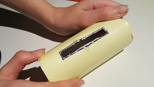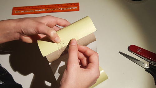 Lưu ý, bạn cần tính toán chi tiết một chút để hình chữ nhật càng ở gần trung tâm cuộn giấy càng tốt. Điều này sẽ giúp âm thanh thoát ra được cân bằng hơn.