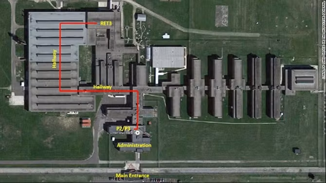 Đường màu đỏ là nơi hai tù nhân dùng để vận chuyển các bộ phận máy tính mà không bị giám sát.