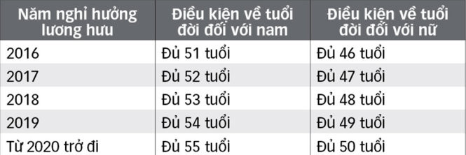 Từ ngày 15-2-2016, người lao động khi nghỉ việc có đủ 20 năm đóng BHXH trở lên được hưởng lương hưu với mức thấp hơn nếu thuộc một trong các trường hợp: