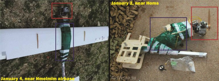 Một số nguồn tin cho rằng, lực lượng Hồi giáo cực đoan đã sử dụng UAV mang bom để tấn công căn cứ không quân Nga ngày 31.12.2017 . Đáng chú ý là một chiếc UAV vũ trang tương tự bị bắn rơi ngoại vi khu dân cư Hmeimim ngày 04.01.2017. Nhưng chiếc máy bay đó không được trang bị camera hoặc ăng-ten GPS để có thể điều khiển. Đây có thể là máy bay thử nghiệm khoảng cách bay, được điều khiển bằng quan sát mặt đất.