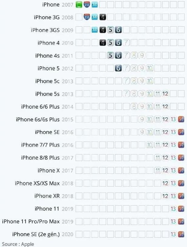 Trong bốn năm qua, các thiết bị hỗ trợ hệ thống mới của Apple dường như có một mô hình mới. Ví dụ: tất cả các kiểu máy hỗ trợ iOS 11 đều hỗ trợ iOS 12 và tất cả các kiểu máy hỗ trợ iOS 13 đều hỗ trợ iOS 14. Điều này dường như cũng xác nhận rằng, khi phiên bản iOS là số lẻ (chẳng hạn như iOS 13), chính thức sẽ thực hiện các thay đổi lớn, cập nhật nhiều chức năng hơn, thiết kế giao diện chức năng mới. Trong khi ở phiên bản iOS số chẵn (chẳng hạn như iOS 14), sẽ được Apple cải thiện tính ổn định của hệ thống, sửa lỗi BUG, tối ưu hóa các chi tiết.