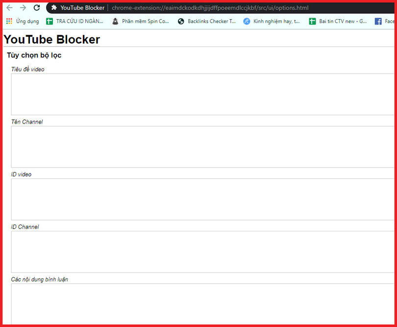 YouTube Blocker sẽ chặn toàn bộ video, danh sách phát, bình luận của các kênh theo từ khóa, tên tiêu đề, hoặc chặn toàn bộ kênh bằng ID.