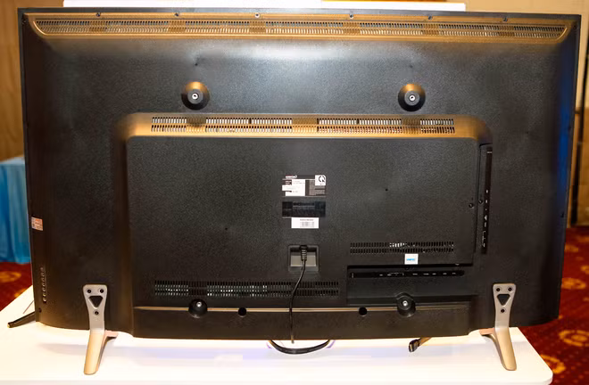 Phần mặt trước đẹp mắt hơn với viền màn hình khá mỏng, chân đế kim loại. Với giá bán 5,99 triệu đồng cho model 32 inch, 8,39 triệu đồng cho model 40 inch và 12,19 đối với model 50 inch, ba mẫu TV mới của Asanzo tiếp tục là các model màn hình cong rẻ nhất trên thị trường.