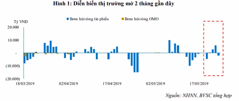 Tính lũy kế kể từ đầu năm 2019 đến nay, NHNN đã hút ròng tổng cộng 105.135 tỷ đồng qua hai kênh OMO và tín phiếu. Trong các tuần gần đây, NHNN đã linh hoạt bơm, hút đan xen tùy theo diễn biến về thanh khoản thị trường.