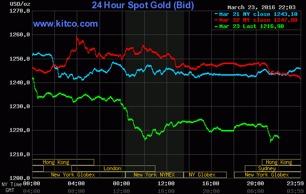 Trước đó, phiên thứ Ba, giá vàng tăng sau tin về vụ đánh bom khủng bố tại Bỉ. Tuy nhiên đà tăng nhanh chóng phai nhạt.