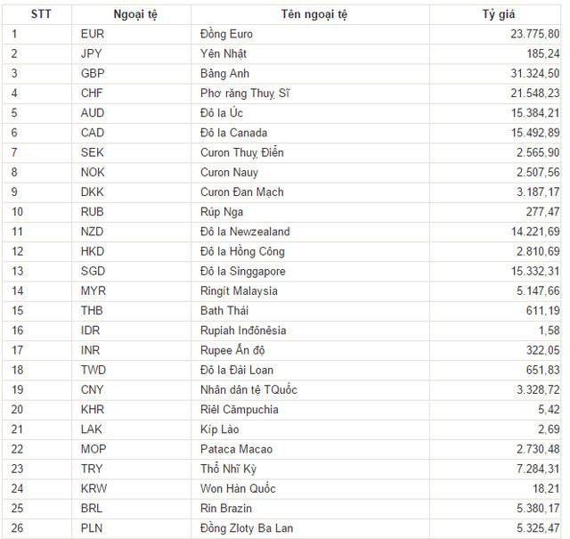 Theo lịch hàng tuần, hôm nay (Thứ Năm ngày 28/01), NHNN cũng công bố tỷ giá tính chéo của Đồng Việt Nam với một số ngoại tệ để xác định trị giá tính thuế, có hiệu lực từ ngày 28/01/2016 đến ngày 03/02/2016.