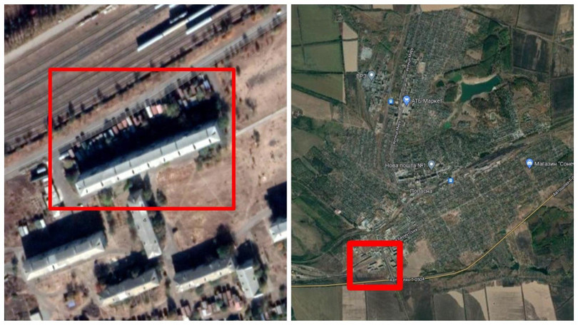 Những bức ảnh chụp vị trí bị tấn công cho thấy có một thương vong, một người mặc quân phục được khiêng ra khỏi tòa nhà bị phá hủy ở Popasna, đăng tải trên mạng xã hội.