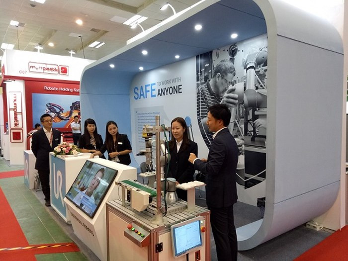 Tại triển lãm sản xuất Việt Nam 2018 (VME) diễn ra từ ngày 8-10/8/2018 tại I.C.E Hà Nội, khách tham quan có thể trải nghiệm thực tế với cobots, lập chương trình hoạt động cho cobots dễ dàng.