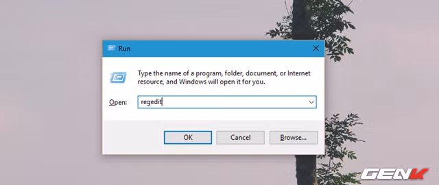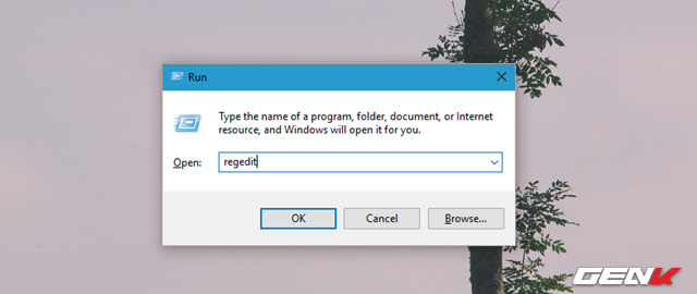 Nhập lệnh “regedit” vào hộp thoại RUN và nhấn ENTER để gọi Registry Editor.