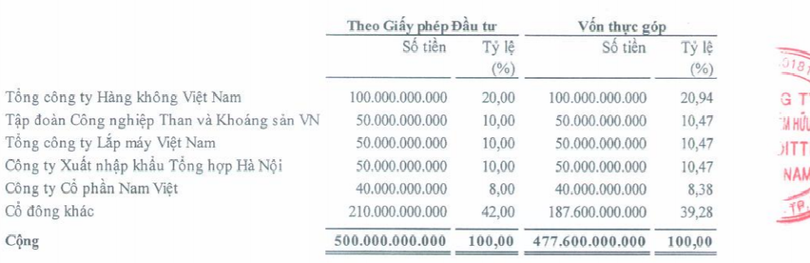 Lúc này, hoàn toàn không thấy sự xuất hiện của Công đoàn VNA trong danh sách cổ đông có vốn góp từ 10% trở lên.