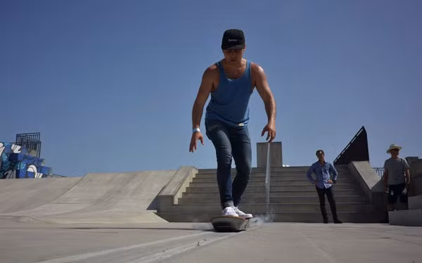 Các video công bố mới đây cho thấy chiếc ván bay này đang được thử nghiệm tại một công viên trượt ván ở Tây Ban Nha.