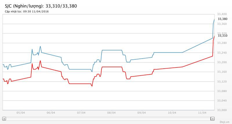 Tại thị trường trong nước, mở cửa phiên giao dịch sáng nay (Thứ Hai ngày 11/04), giá vàng SJC cũng đột ngột tăng mạnh.