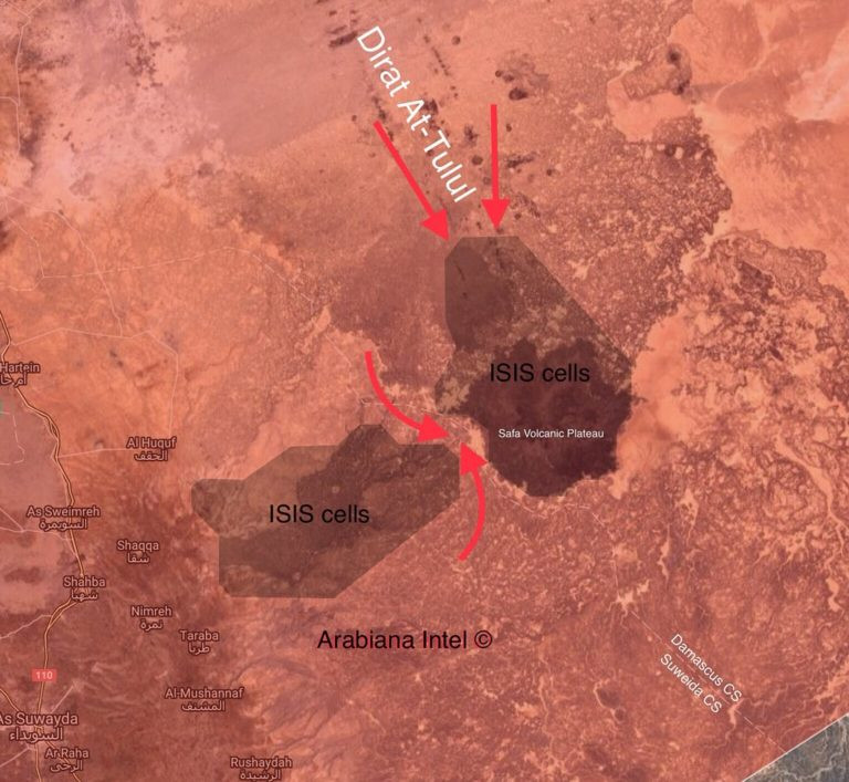Theo Blog al-Suwayda 24, các tay súng khủng bố IS còn lại đang co cụm trong các khu vực al-Tamthunah, Sath Namlah, al-Hasa, al-Safa, Qa'a al-Banat và al-Waer al-Gharbi. Hàng trăm tay súng IS đang lên kế hoạch tiến hành một cuộc phản công giành lại các khu vực đã mất.
