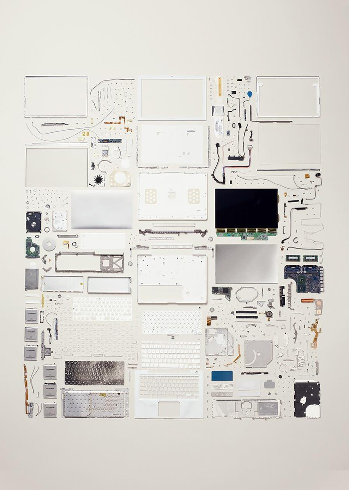 Nhiếp ảnh gia 42 tuổi tách từng linh kiện của thiết bị ra, sắp xếp chúng rất gọn gàng và chụp lại, giúp những người dùng khác thấy được thiết bị gồm những gì và hoạt động ra sao. Trong ảnh là loa thông minh Amazon Echo, ra đời năm 2014 với 50 linh kiện.