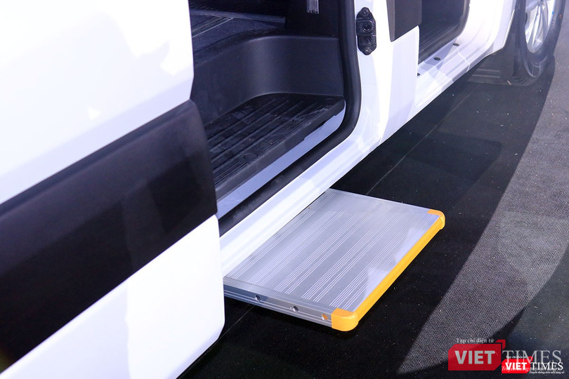 Với mục tiêu mang lại sự thoải mái và thuận tiện tối đa cho hành khách, Hyundai Solati còn được trang bị bậc lên xuống chỉnh điện cùng tay vịn ở cửa xe giúp lên xuống xe một cách dễ dàng và tiện dụng.
